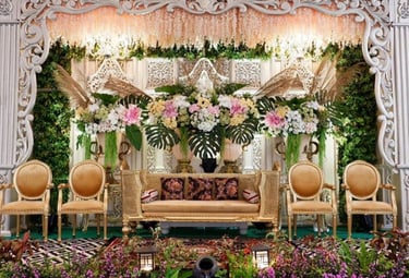 Dekorasi pelaminan mewah yang memperindah hari bahagia Anda.